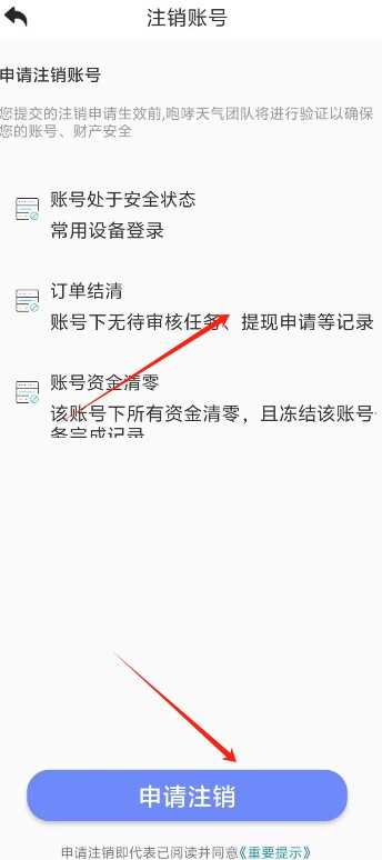 3、仔细阅读账号注销相关提示说明,确认无误后点击申请注销”,即可完成整个操作。