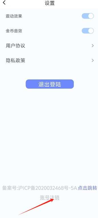 2、在设置界面底部找到账号注销”功能入口,点击进入注销流程页面。