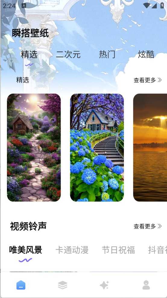 瞬搭壁纸app不仅限于静态图片,还支持动态壁纸设置,让你的手机界面灵动鲜活。此外,用户可自由搭配铃声与来电视频,打造独一无二的来电提醒风格。结合拼图模板功能,还能在线创作专属壁纸,将多张照片融合成一张个性桌面,真正实现从视觉到听觉的全面定制。