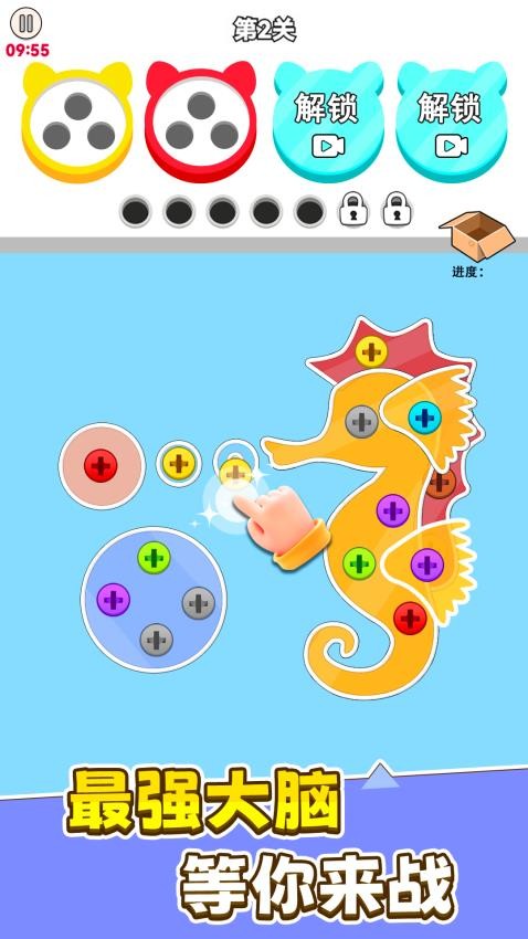 1、提供多样关卡与挑战模式,不同关卡中螺丝排列与图案主题各异,持续提供新鲜的游戏体验。