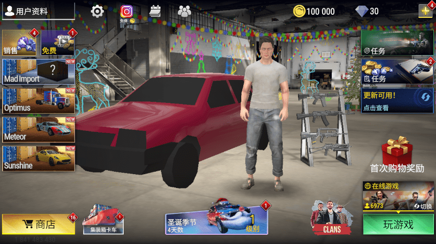 进入游戏后,点击人物旁边的汽车进入定制界面。
