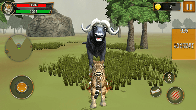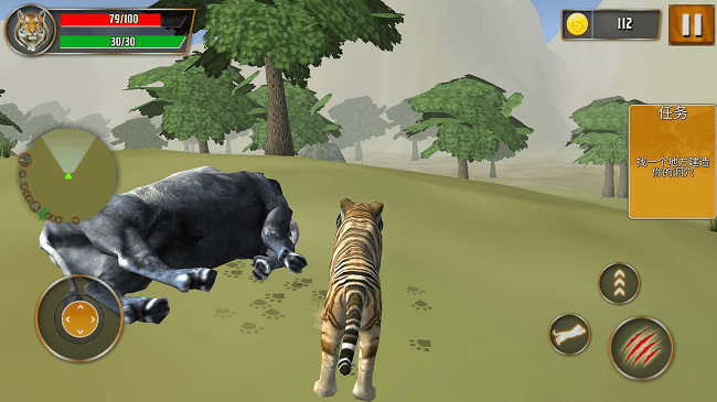 1、扮演老虎在广阔荒野中自由探索,寻找水源与猎物以保证基本生存。