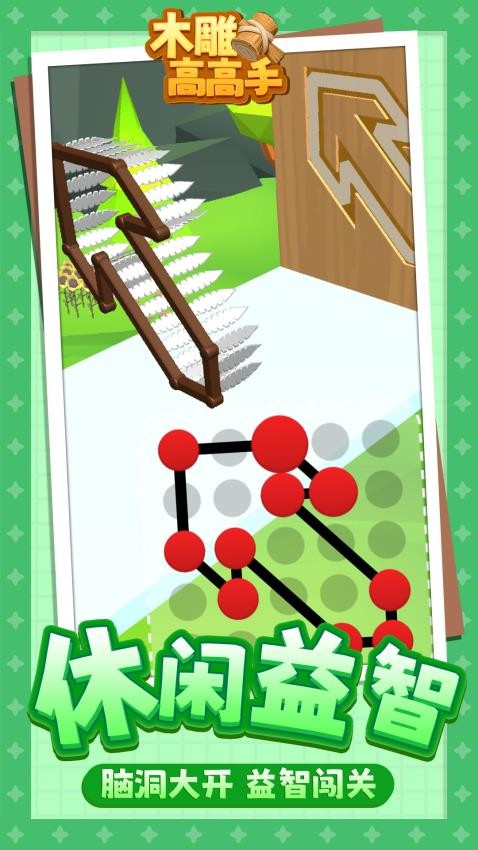 木雕高高手开启一段奇妙的指尖创作之旅,你将踏上一条不断延伸的道路,沿途会遇到各种需要帮助的朋友,比如迷路的人类、好奇的大猩猩,运用智慧,雕刻并拼接形状各异的木板,为他们搭建通往下一段旅程的桥梁。