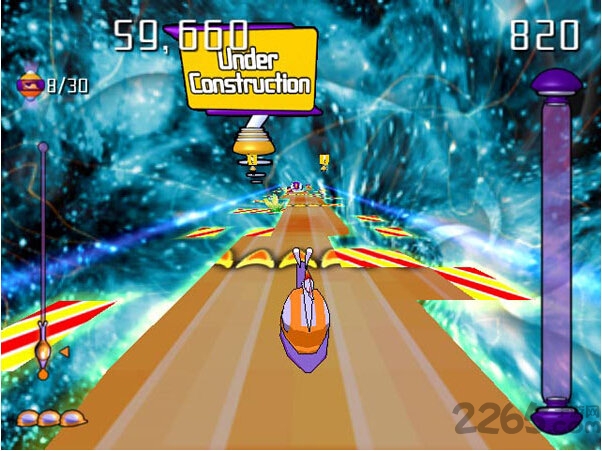 游戏的主角是一只可爱的蜗牛,这可是一只速度非常快的蜗牛哦,蜗牛的任务就是在宇宙中各个星球之间传送邮件。这款游戏主要考验你的反应能力,游戏中,需要面对各种各样的障碍,稍不留神就会粉身碎骨,路上坏人也很多,不过会有很多道具,可以加血,升级武器,武器可升级到火箭弹,能打死更多的敌人。游戏的画面是3D场景加2D动画渲染,游戏中速度感很强,玩起来特别的爽快。
