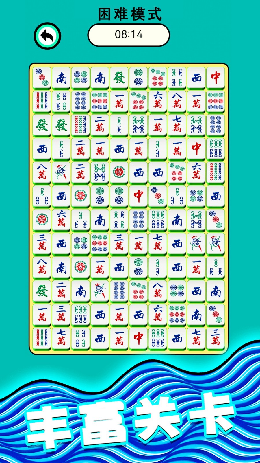 2、所有麻将牌均清晰展示在界面中,图案设计鲜明易辨,玩家需快速扫描全局,识别相同牌型并规划连续消除顺序。