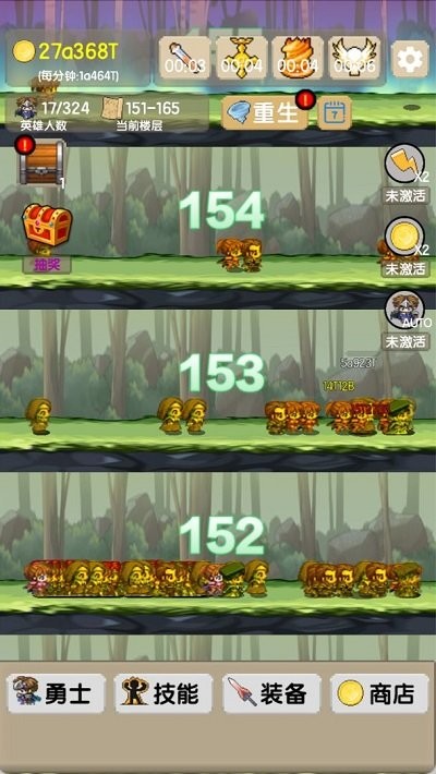 1、招募并培养多种职业勇者组建专属队伍进行闯关。