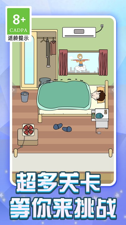 冬天不想起床是休闲益智类的游戏,冬天太冷,小男孩不想起床,你需要想各种办法让他快乐的起床,各种奇葩的叫醒方式数不胜数,玩家要顺利的通过所有关卡完成挑战。
