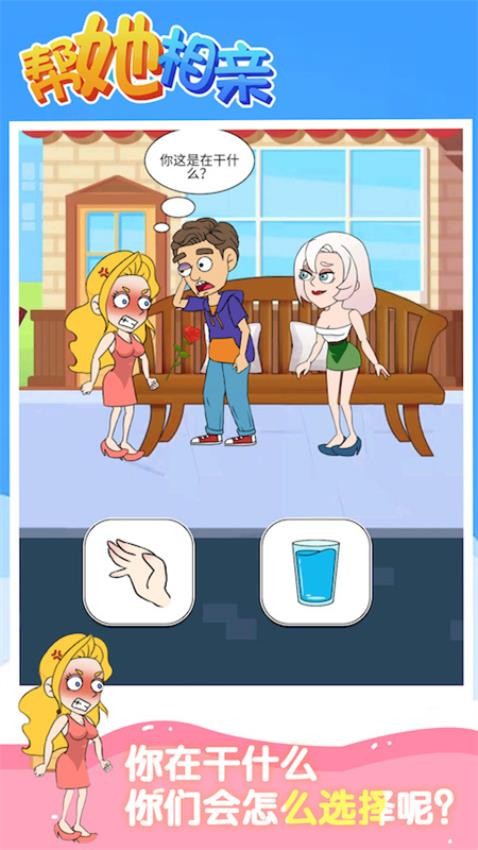 帮她相亲是款乐趣十足的休闲益智游戏,画面采用精美卡通风格,设计清新明快,你将扮演一位热心的相亲助手,在不同场景中帮助主人公完成相亲任务,游戏还准备了各种创意挑战,让过程充满趣味,可玩性十分丰富。