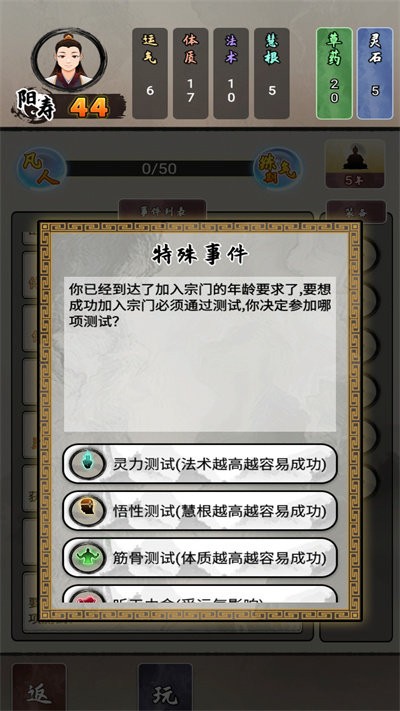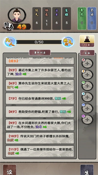 ·游戏进入中期后,即可自建门派。虽然为简单的进度条点击经营方式,但招募不同天资弟子