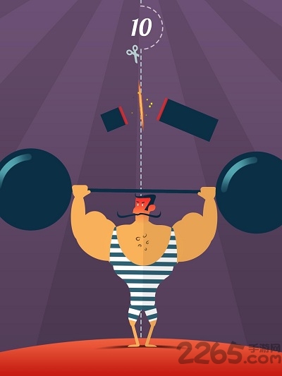 一位“大力水手”正把巨大的哑铃高高举起,游戏开始前,“大力水手”稳稳的举住哑铃,而当游戏开始后,屏幕两旁会飞出铁块,而玩家就要在铁块飞到中间的分割线的时候,划屏切割铁块。断开的两块铁块将分别向“大力水手”的哑铃两边增加重量,如果玩家可以做到平均切割铁块,那么“大力水手”便可坚持举着哑铃;若是铁块切割不平均,那么“大力水手”就会失去平衡,倒向一边。