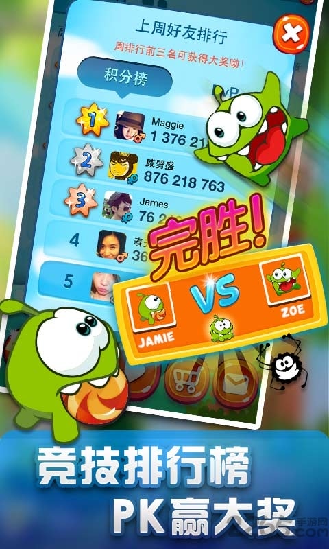 《一起割绳子2》,经典的割绳子玩法,众多关卡挑战,还可以和好友争夺PVP排行榜,比萌斗智力你怕了吗?世界大战、好友比拼任你挑选,全新每日任务,天天赢好礼,与好友互赠能量表心意!