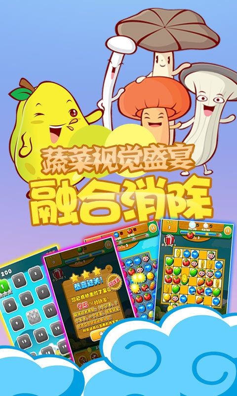 以消除种类不同的超萌蔬菜为游戏任务主线。