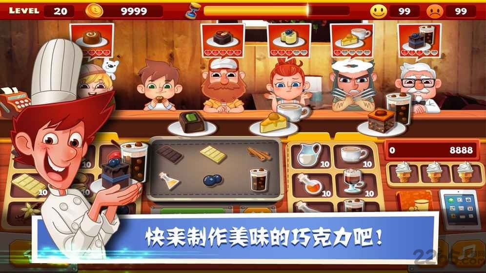 这是一个非常好玩的巧克力制作游戏,有着数十种不同的面包点心及其制作方法。顾客络绎不绝地来到你所经营的面包店,点选各种不同的面包,你要尽最快的速度把顾客所点的面包点心制作好。同时一定要记住每种面包的制作顺序,如果把原料的顺序放错了就会制作失败了,非常有挑战性! 还能通过升级和装饰来提升你的制作速度和服务质量哦,还等什么呢,快来经营你自己的面包店吧!