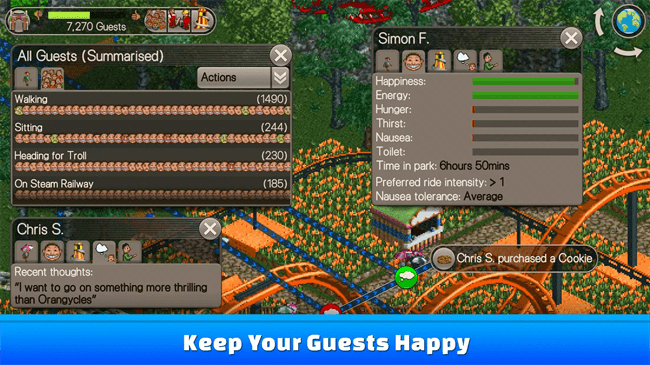 管理您的公园的营销和财务,以在吸引更多客人的同时获利;组织您的员工,使公园保持良好运行并保持最佳状态。