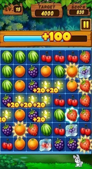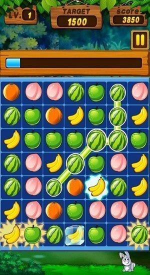 3、在限定时间内,消去更多的水果,达到目标要求即可过关
