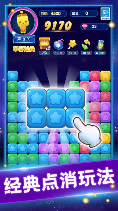 2、在不同游戏模式下,消除时会触发各具特色的动态特效,从星光迸发到连锁爆炸,呈现出绚丽多彩的视觉冲击。