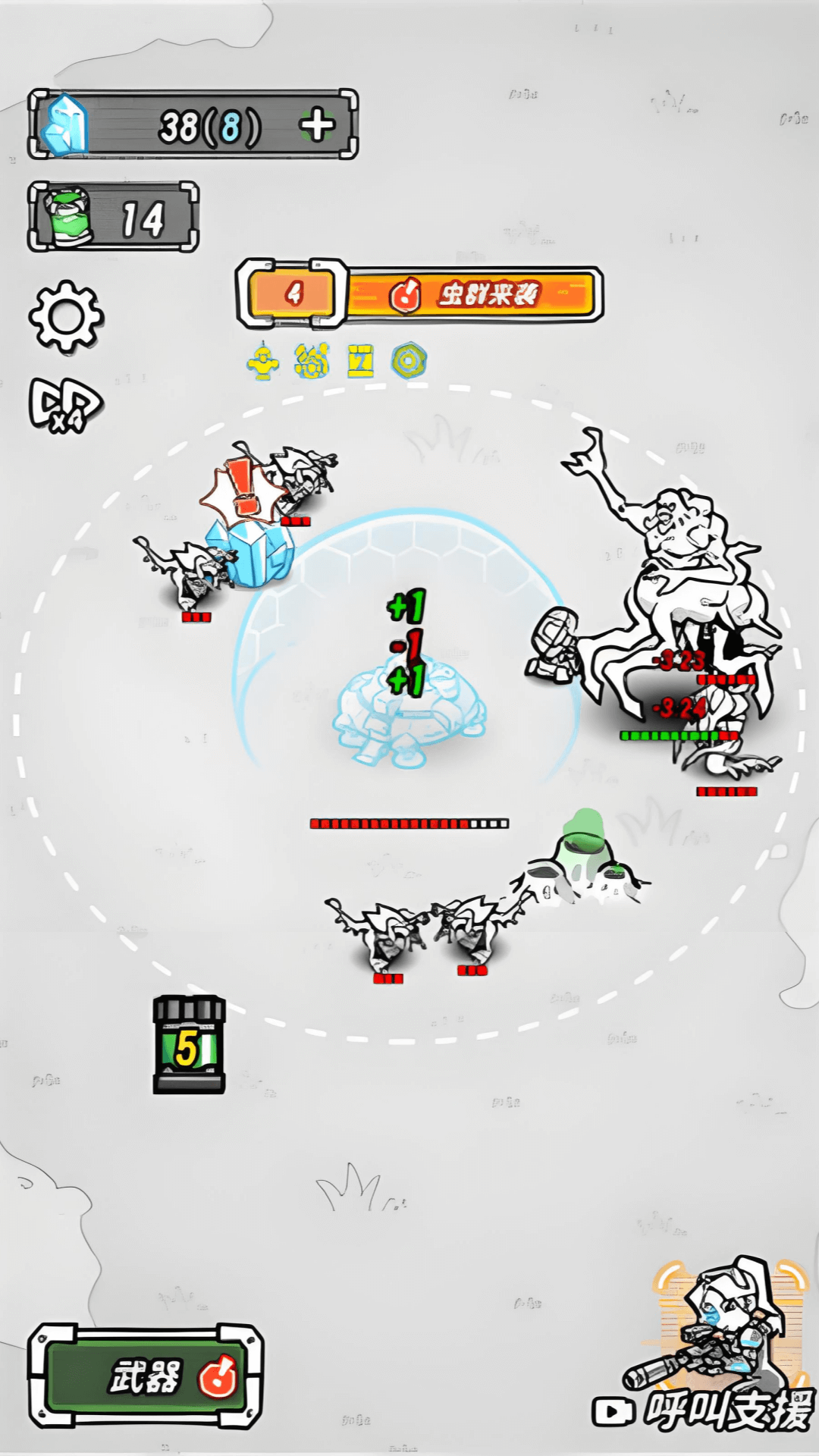 3、武器攻击速度与伤害值可单独升级,玩家需根据虫群特性与战场形势,合理搭配并强化装备组合。
