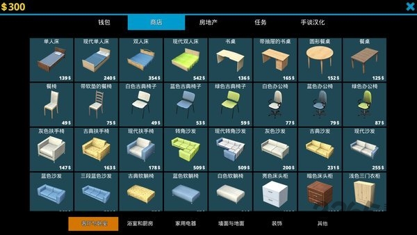 3、不同房屋的风格可选择,自己设计并添置相应的家具