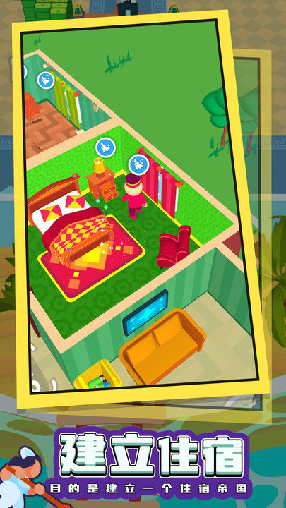 2、安排好房间给客人,他们住完后,需要及时清理打扫,才可以继续接待客人,移动小人靠近待清理的地方,就可以自动清理了。
