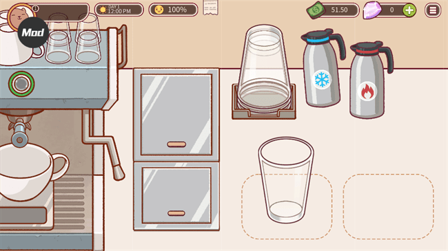 2、通过不断学习做出更好的咖啡,卡通风格的游戏画面等你去体验;