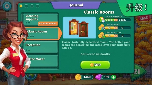 疯狂大酒店中文版是一款经营酒店的游戏,玩家在游戏中经营一家大型酒店,需要帮助客人办理各种入住服务,同时也要为他们提供美食,只要赚取了金钱才能扩张经营,将你的酒店开遍全球。感兴趣的朋友赶快来2265安卓网下载吧!