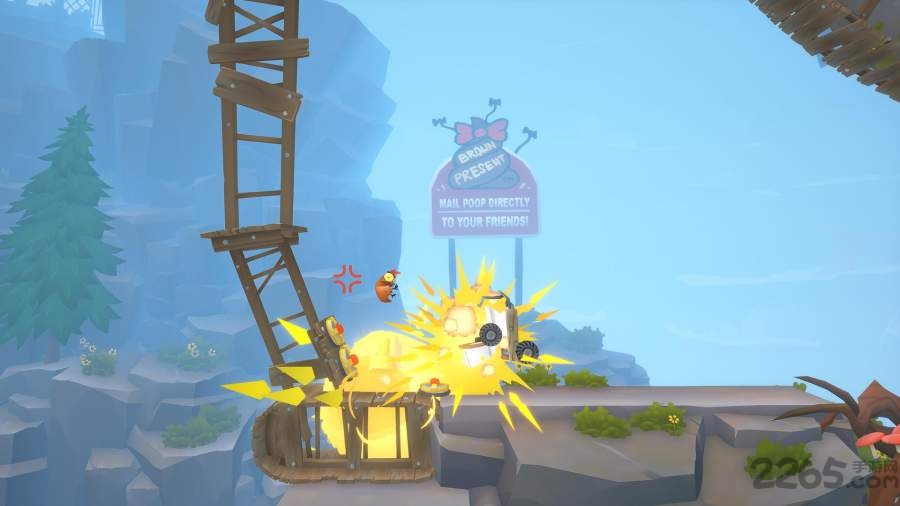 玩家将可以选择一种动物,并将它送至冒险的赛道上,你甚至能够看见一只坐在马桶上的鸡在滑稽的躲避着各种各样的陷阱。整体游戏偏于风趣搞笑,在娱乐的同时还可以与好友一较高下。