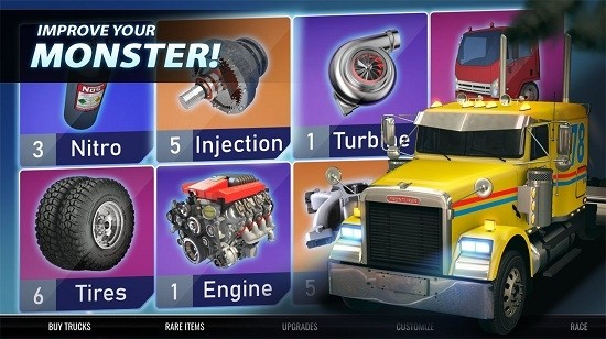 大型重卡赛车可灵活避让各种障碍物,让您安全越过终点线,获得更多奖励。