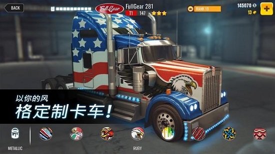 这是一个休闲的竞速游戏,里面驾驶的都是美国重卡,你经常在各种公路片当中所看到的各种重卡都会在这款游戏当中出现,在游戏当中你可以按照你自己的喜好来对自己的卡车进行改良,勇夺第一!