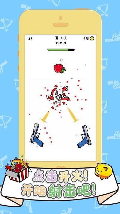双枪王者最新版是一款非常有趣的射击题材的游戏,游戏类型切水果的玩法,在游戏中玩家将要用双枪射击各种出现的物品,非常的轻松好玩,让玩家可以尽情的体验独特射击乐趣,感兴趣的快来下载吧!