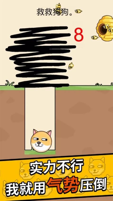 脑洞解密大作战手游用线条构筑即时防线,关卡中,一个醒目的狗头暴露在蜜蜂的攻击路径上。你需要用手指迅速画线,在狗头周围形成屏障,隔绝蜂群的冲刺。每个关卡地形各异,障碍物与蜂巢位置不断变化,要求你灵活调整画线策略,构思出最有效的保护形状。