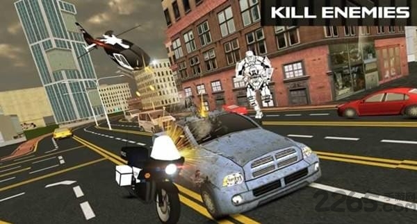 在多年的未来里,警察使用着高科技的变形机器对抗邪恶机器。在这里,不仅仅可以驾驶汽车变形机器人,机器狗,甚至还有坦克飞机等传统作战兵器供你使用,体验科技变换间不同种类战争机器无情的攻击吧!