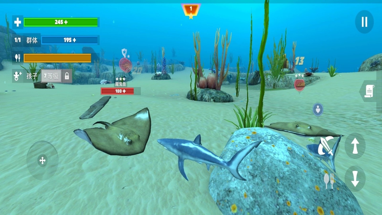 鲨鱼模拟器带来以进化为主题的海洋冒险体验,在这个弱肉强食的世界里,你需要帮助鲨鱼捕食各种鱼类,获取成长所需的能量。只有不断变强,才能最终成为称霸海洋的顶级猎手。