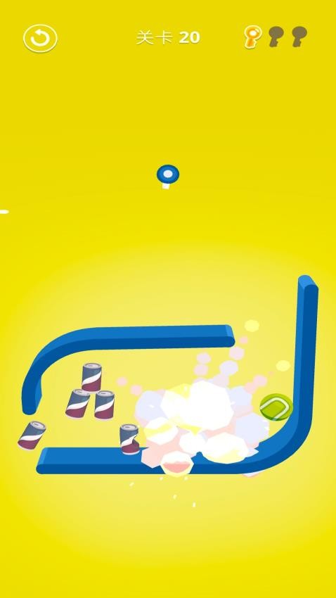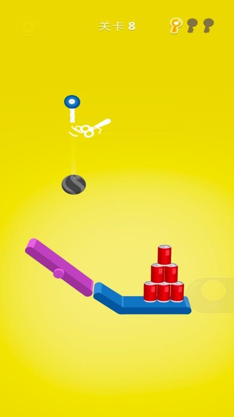 1、玩家需巧妙规划小球的初始下落路径,通过精准计算使其掉落后能准确击倒目标瓶子。