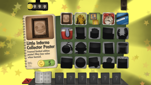 小小地狱火little inferno是一个休闲的解谜玩法。游戏过程中,玩家会收到很多信件,在一个越来越冷的世界,2265玩家必须通过游戏烧掉购买的玩具、照片以及各种道具来取暖御寒。游戏没有一个具体的目的,各种内涵,各种寓意。不管是你喜欢的,讨厌的,统统放进付之一炬。主旨就是烧掉能烧的一切你能烧掉的东西,各种内涵,各种寓意,只能玩家自己体会。