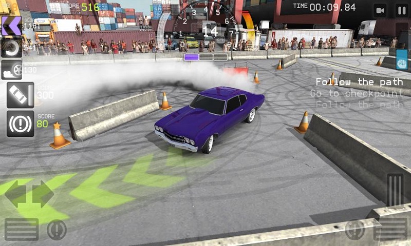 玩家需要在一个偌大的竞技场中利用娴熟的漂移技巧绕过一个个障碍物并成功到达终点,而不是和以往的竞速游戏一样只追求速度一路狂飙就行了,在玩法上可谓相当考验玩家技巧。