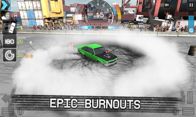 旋转风暴(Torque Burnout)是非常另类的赛车游戏,比起竞速,更不如说玩家的任务是在一个偌大的竞技场中利用娴熟的漂移技巧绕过一个个障碍物并成功到达终点。你不需要拼速度也不需要不达终点誓不罢休,你只需要坚持下来尽可能的驾驶车辆转更多的圈圈。为了能够用车尾气画出更多“甜甜圈”,磨坏再多轮胎也是在所不惜……