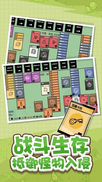 将城市经营与卡牌堆叠玩法相融合的生存游戏。开局一包卡,随机开出各种物品卡牌,通过合理的安排、堆叠,不断探索纸牌的组合,收集食物与修建建筑,应对逐渐变强的怪物,带领你的村庄生存下来,并在完成任务的同时变得更强大,击败最终BOSS大魔王。