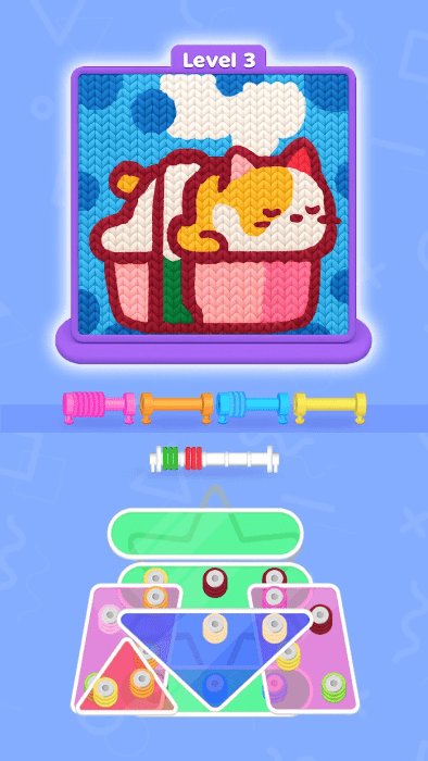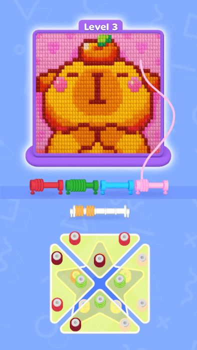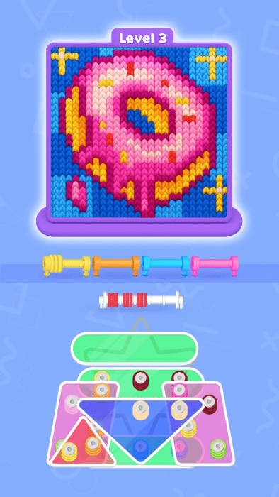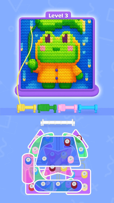 羊毛分类颜色拼图最新版是一个通过纱线分类谜题和舒缓的像素艺术放松你的大脑,欢迎来到羊毛分类:颜色拼图——一段舒缓的解谜之旅,鲜活的纱线与令人满足的逻辑相结合,创造出像素级完美的杰作。沉浸在一个充满柔软纹理和创意挑战的多彩世界中。随着每一幅作品的完成,你将体验到将混乱变为有序和色彩的简单乐趣。你的目标是选择合适的线轴,并将它们分类到匹配的颜色条中。随着每个颜色条的填满,一幅精美的像素艺术图像开始成形。