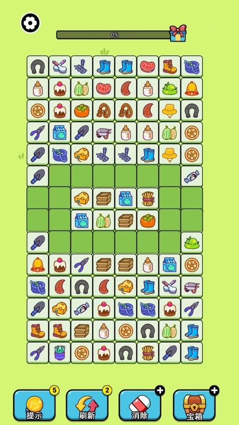 1、包含丰富多样的花式元素,如锄头、水桶、鞋子、剪刀及各类水果等,供玩家在关卡中识别与匹配。