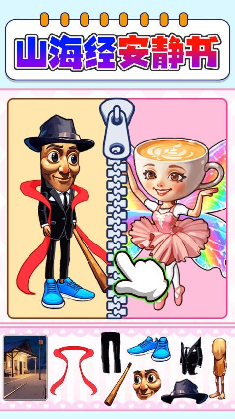 童话安静书,翻开一册可以互动的山海绘卷。游戏将山海经中的神兽与奇幻角色化为可爱的Q版形象,为这些温和的异兽搭配服饰与配件,从飘逸的祥云披帛到精致的灵石挂坠。简单的拖拽混搭,就能满足任务要求,装扮出独一无二的梦幻神兽,在宁静的氛围中完成收集与创造。