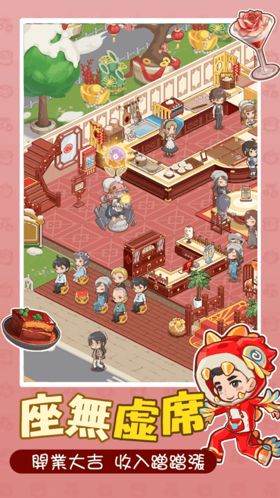 1.提升店铺等级,解锁新的包厢。店铺有超多装修风格,可以随心选择。招募员工,提高服务质量,打造舒适且吸引人的用餐环境,这些都是您发展事业的关键。