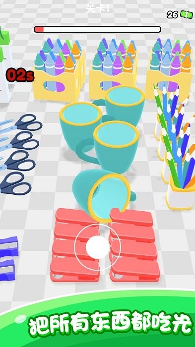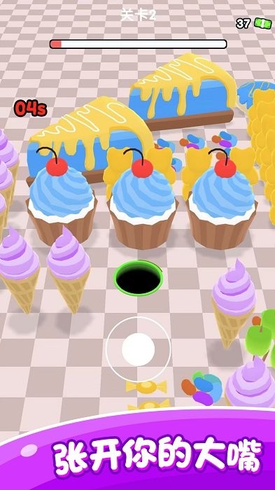 操控黑洞在关卡场景内移动,靠近各种物品时,黑洞会自动将其吞噬,发现任何状况可尽快地突破。