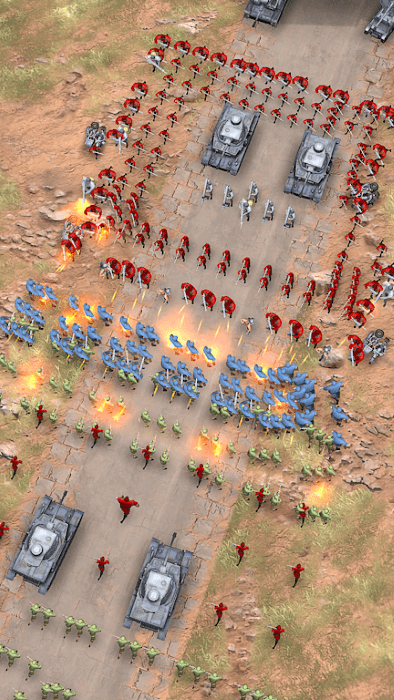 拖动并合并相同的部队,即可立即解锁更强大的版本。坦克、狙击手、直升机和导弹车——你的军队每次合并都会变得更加致命。