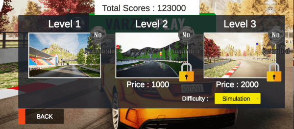 2、在赛车限制所有的汽车有现实的功率,扭矩和齿轮比。在加速过程和最高速度是基于一个完整的模拟。