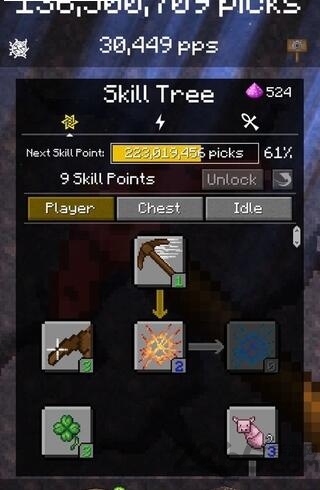 制作许多收藏品。探索不同的生物群落,看看你是否可以达到它们。您是否可以收集所有的镐头并获得排行榜的顶部?PickCrafter是一款针对喜欢挖掘,制作和点击的人们的块状采矿游戏 - 即使在闲置或离线时也是如此!在这个破砖的冒险中珍藏稀有矿石!尝试并使其成为十亿选择并收集所有的镐。成为Picks亿万富翁并在你的技能树中解锁点!