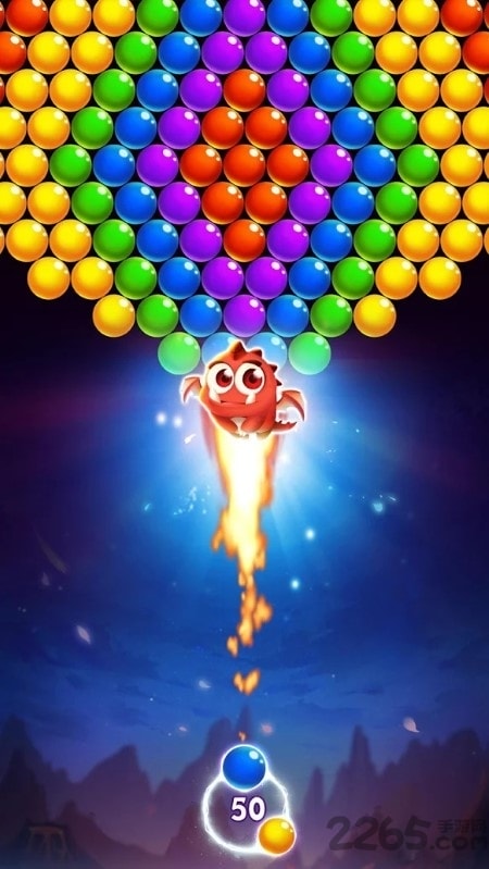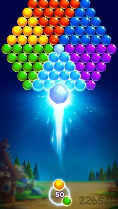 1、玩家操控炮台发射彩色泡泡完成消除任务。