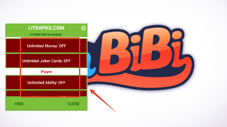 开启您要破解的内容,off代表关,on代表开;