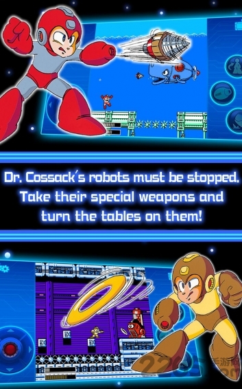 游戏将原有作品中的内容100%还原到移动平台,打倒BOSS获得特殊武器的系统;画风上依然沿袭原版的8比特风格,4:3的画面比例也没有因手机屏幕尺寸的变化而做出任何妥协,