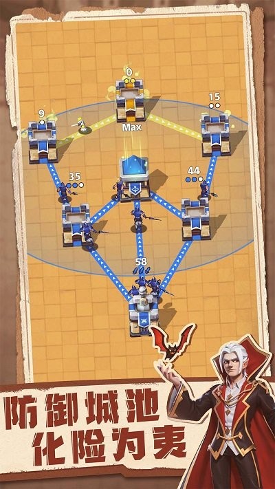 2、合理布置不同功能的防御塔,构建有效火力网。