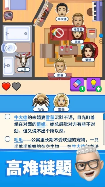 2、座位安排是游戏的核心玩法,玩家必须根据人际关系安排座位,才能完美解决谜题。